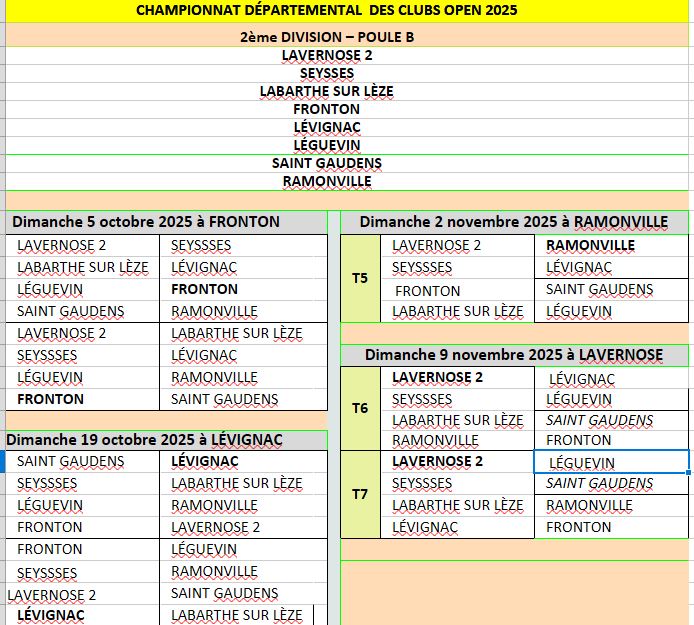 Calendrier Qualifs Championnat Haute-Garonne 2025